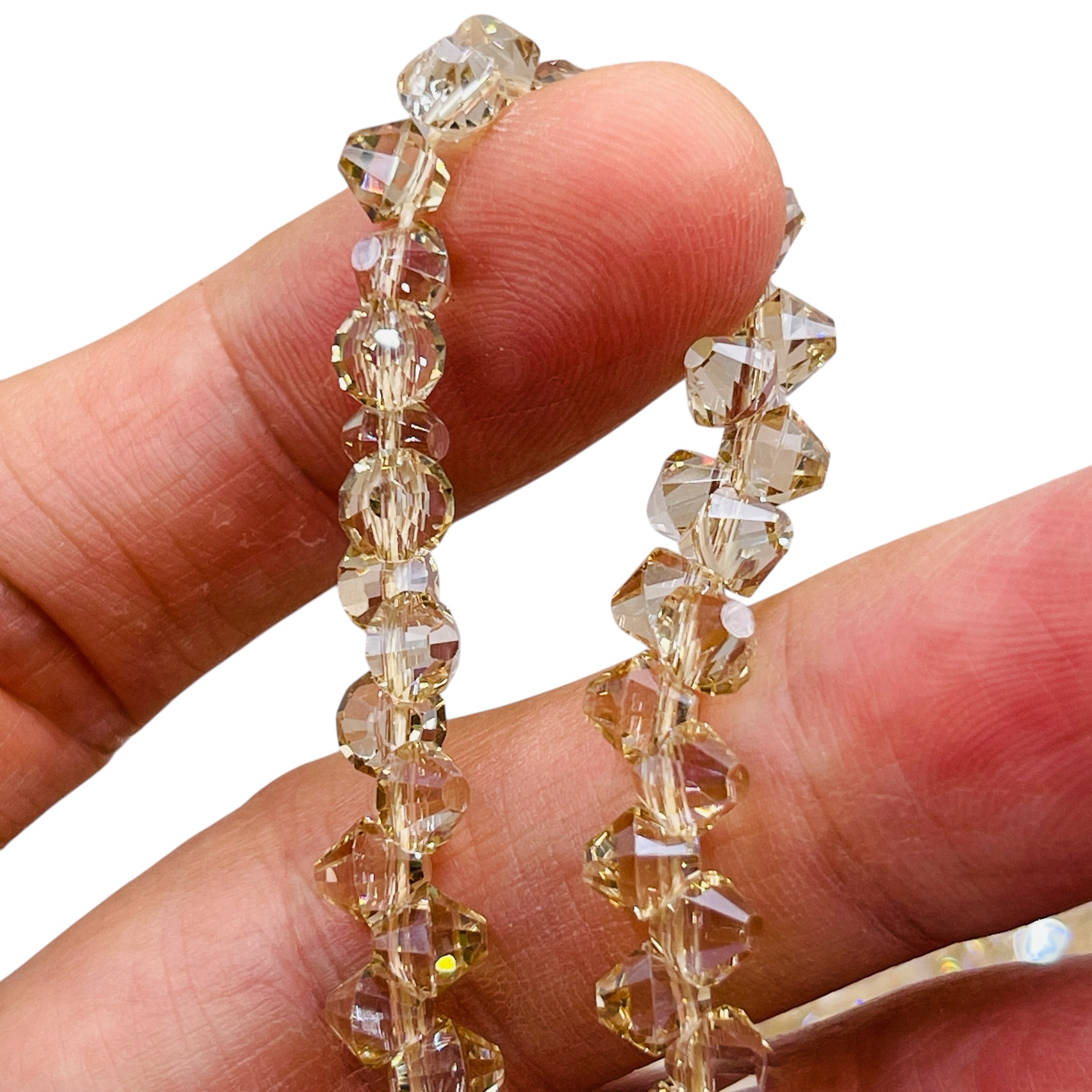 6mm Thunder Polish Glass Crystal Bicone Top Drilled Silver Champagne Qty available: 199 SKU:6BISD2 This item is currently on backorder but you can still purchase it now and we'll ship as soon as more become available. 6 inches long45pcs per strand Superior QualityEach Bicone is nicely stacked on each others.Sparkle up your designs with Thunder Polish Glass Crystal. Sale! from $8.25 USD /per Produc variants Default Title Qty. Add to Cart This item is a recurring or deferred purchase. By continuing, I agree to the cancellation policy and authorize you to charge my payment method at the prices, frequency and dates listed on this page until my order is fulfilled or I cancel, if permitted. Couldn't load pickup availability Refresh Tweet