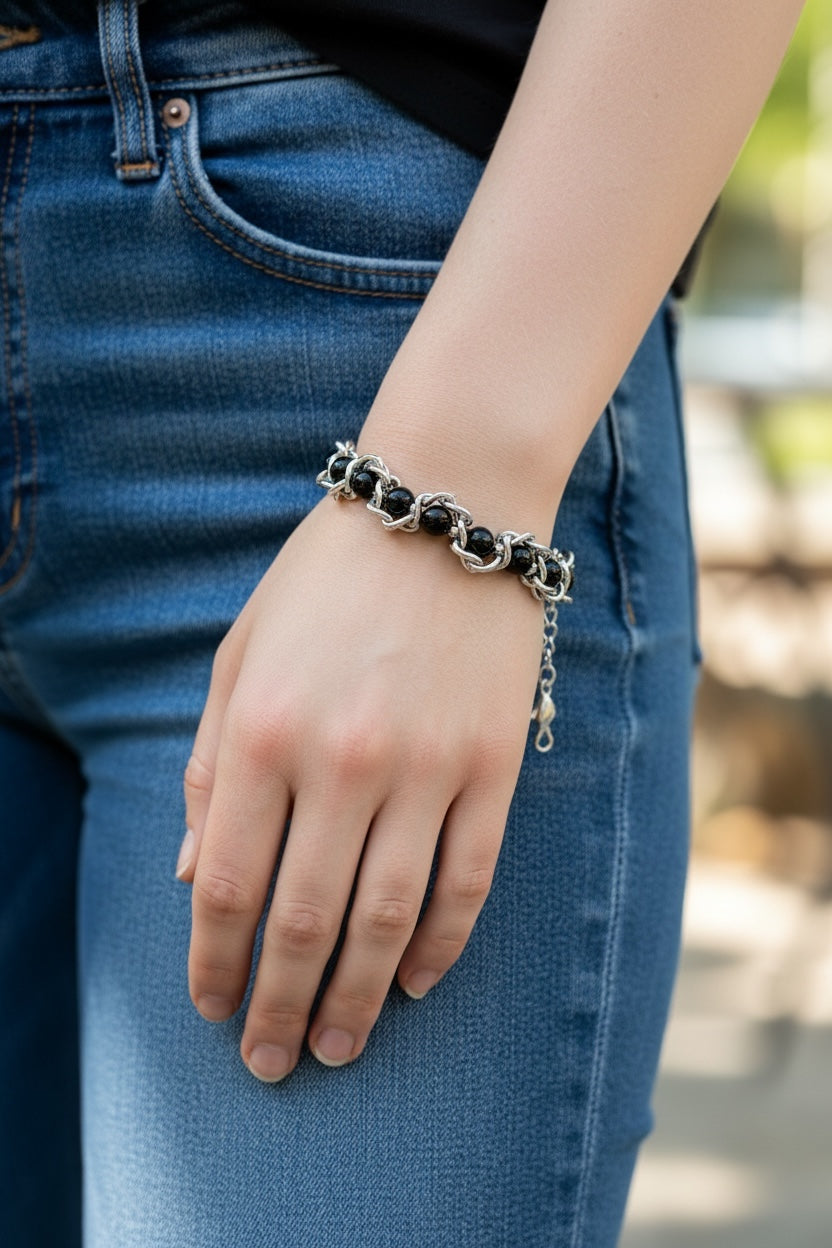 Onyx & Steel: The Industrial Edge Bracelet